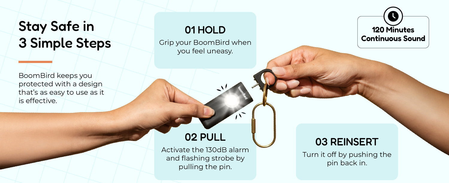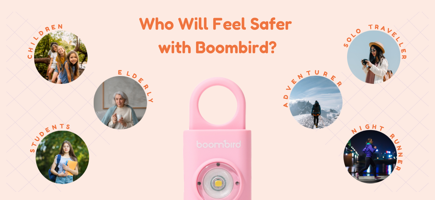 At BoomBird, we believe that everyone deserves to feel safe. Our products are, thus, for anyone who wants to ensure their safety and protection above all—whether you're a teenager heading home after school, a senior living independently, or anyone in between. Safety is universal, and BoomBird is here to make it simple.